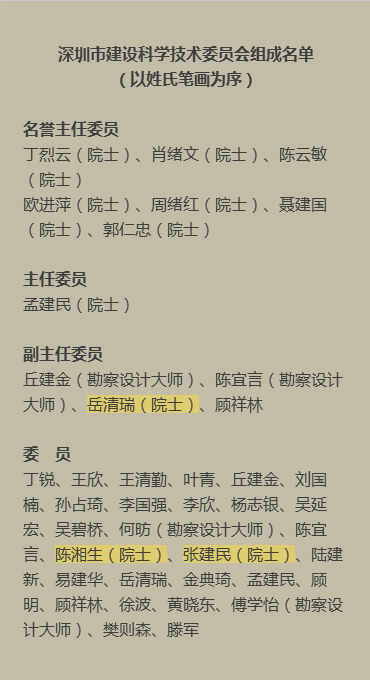 2017年中国工程院院士增选结果中,工程建设领域共有9名学者入选,其中3名是深圳市建设科学技术委员会委员,他们分别是: