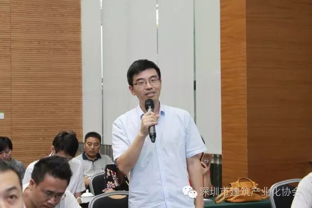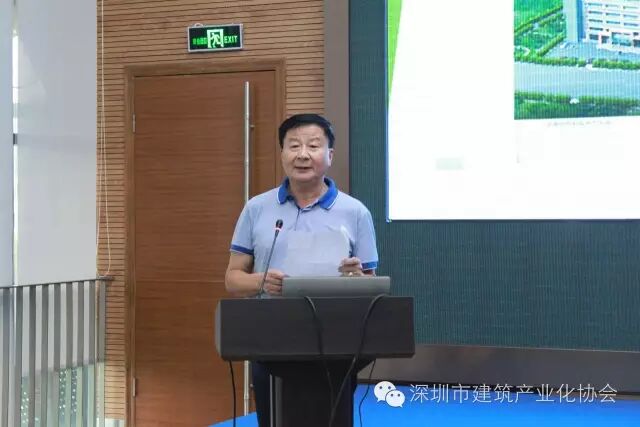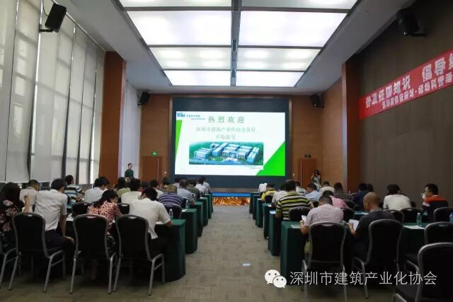 在主持人对胜德意高新技术有限公司作简单介绍后,考察团观看了胜德意的宣传片,对胜德意公司的总体概况、公司业务、产品技术、工程项目有了详细的了解。随后,坪地街道办钟主任、低碳城相关负责人、胜德意总裁陈国辉、深圳市建筑产业化协会秘书长付灿华一一上台发表讲话。