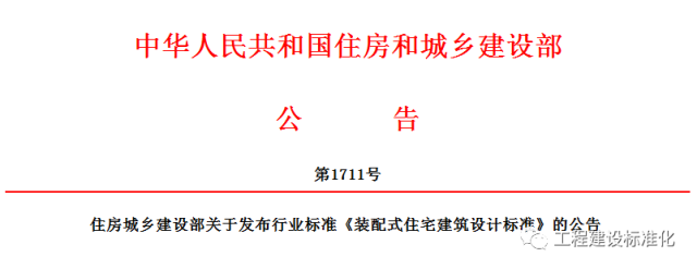 现批准《装配式住宅建筑设计标准》为行业标准,编号为JGJ/T398-2017,自2018年6月1日起实施。