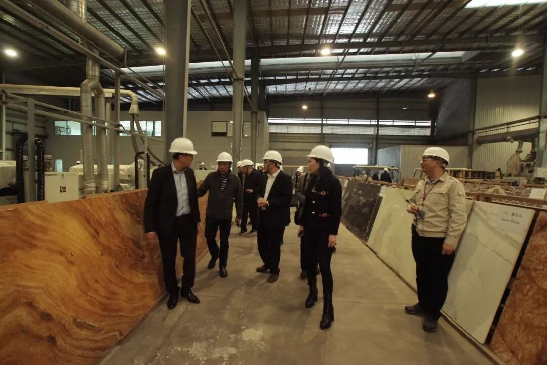开班仪式结束后,与会领导和嘉宾们移步有利华生产厂区,参观预制混凝土构件展示区、生产车间。